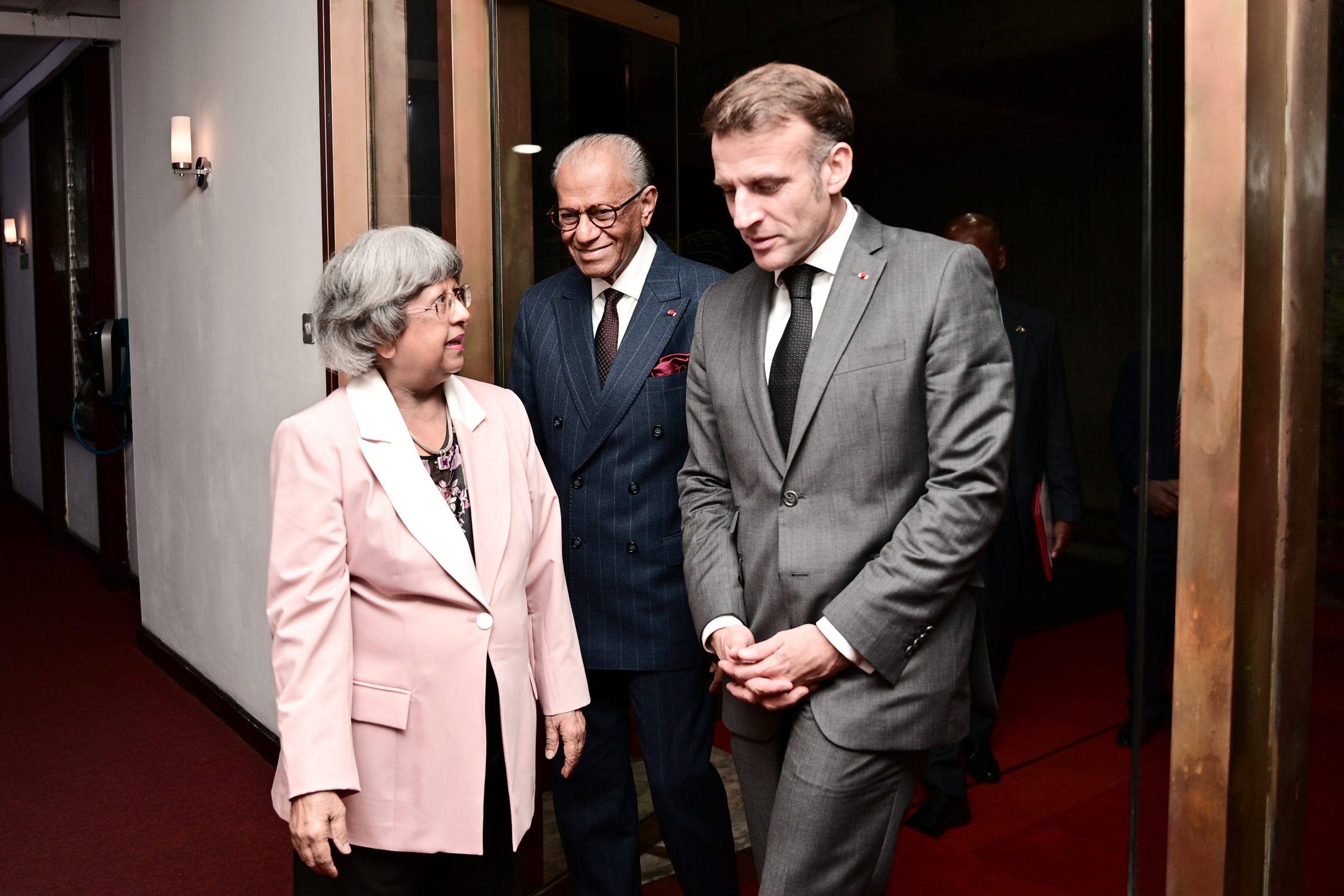Courtesy call Honourable Shirin Aumeeruddy Cziffra, Speaker of the National Assembly, welcoming His Excellency Emmanuel Macron, President of the French Republic on 20 November 2025, …